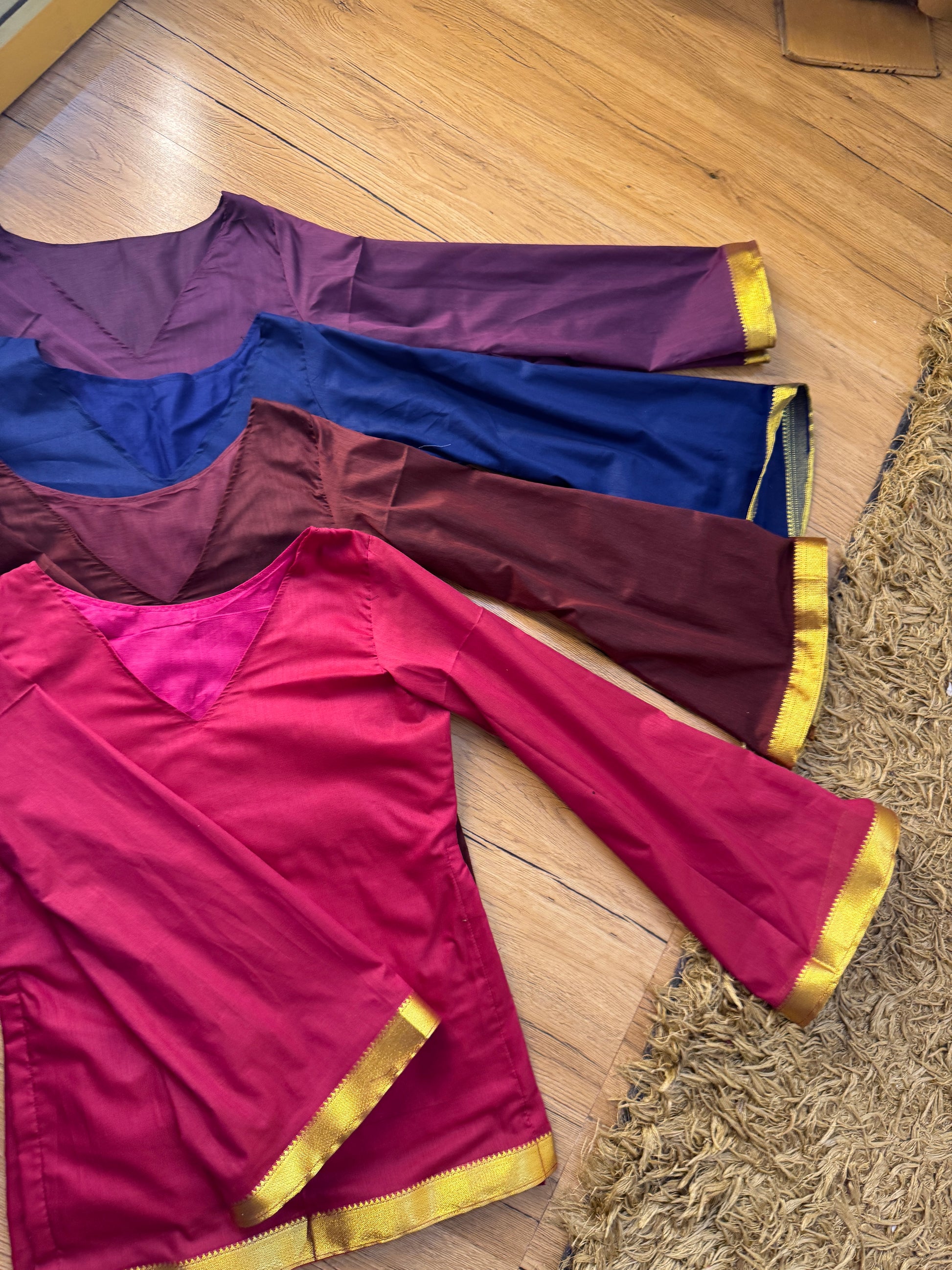 A flowy 23/24 inch silhouette crafted in airy kora cotton with delicate floral embroidery. Designed with a cotton lining for all-day comfort and playful bell sleeves effortless vibe. ๐ฟ๐