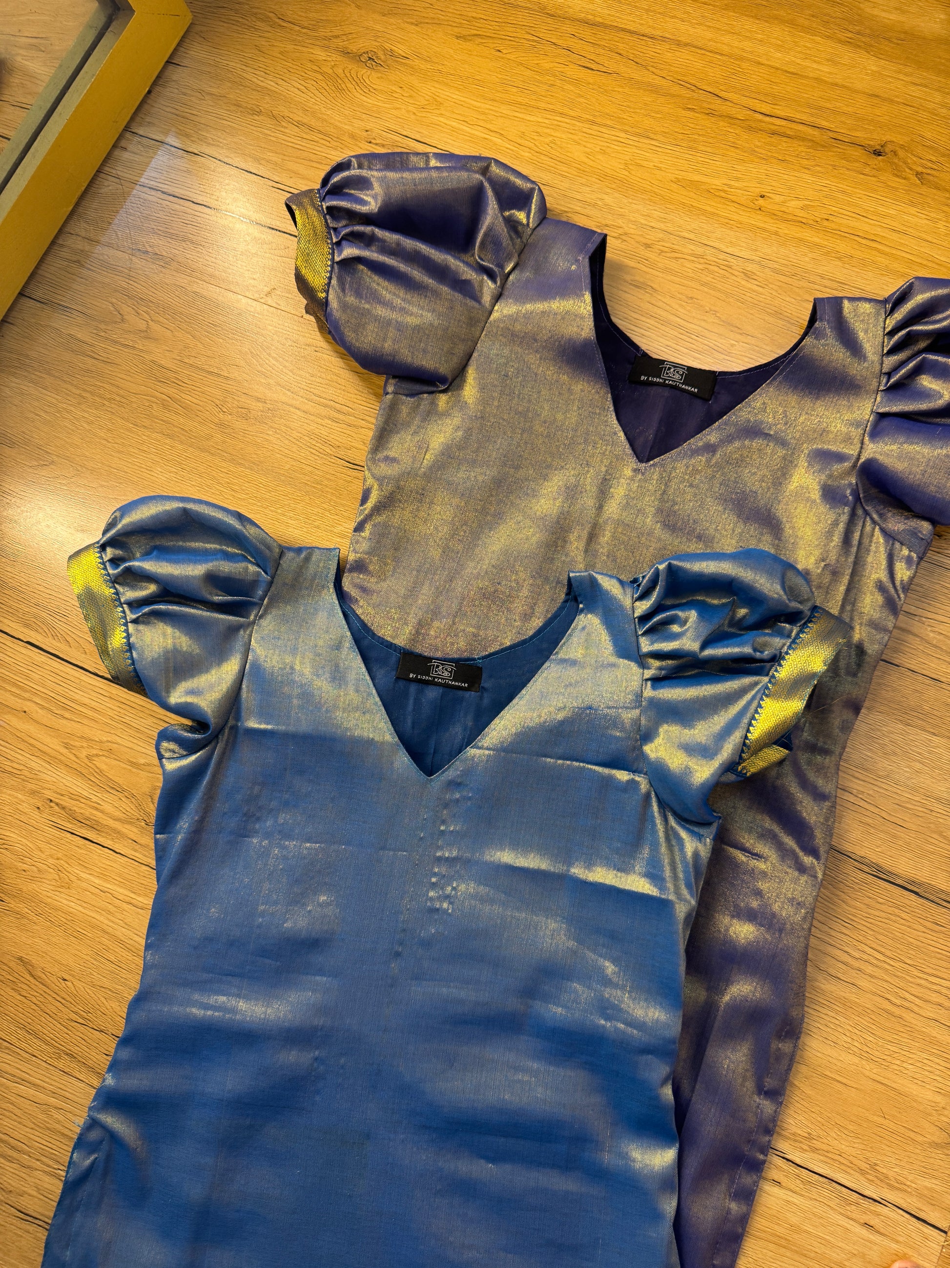 straight kurti with Vneckline and short puff sleeves . full length of 42 inches comes with cotton lining .